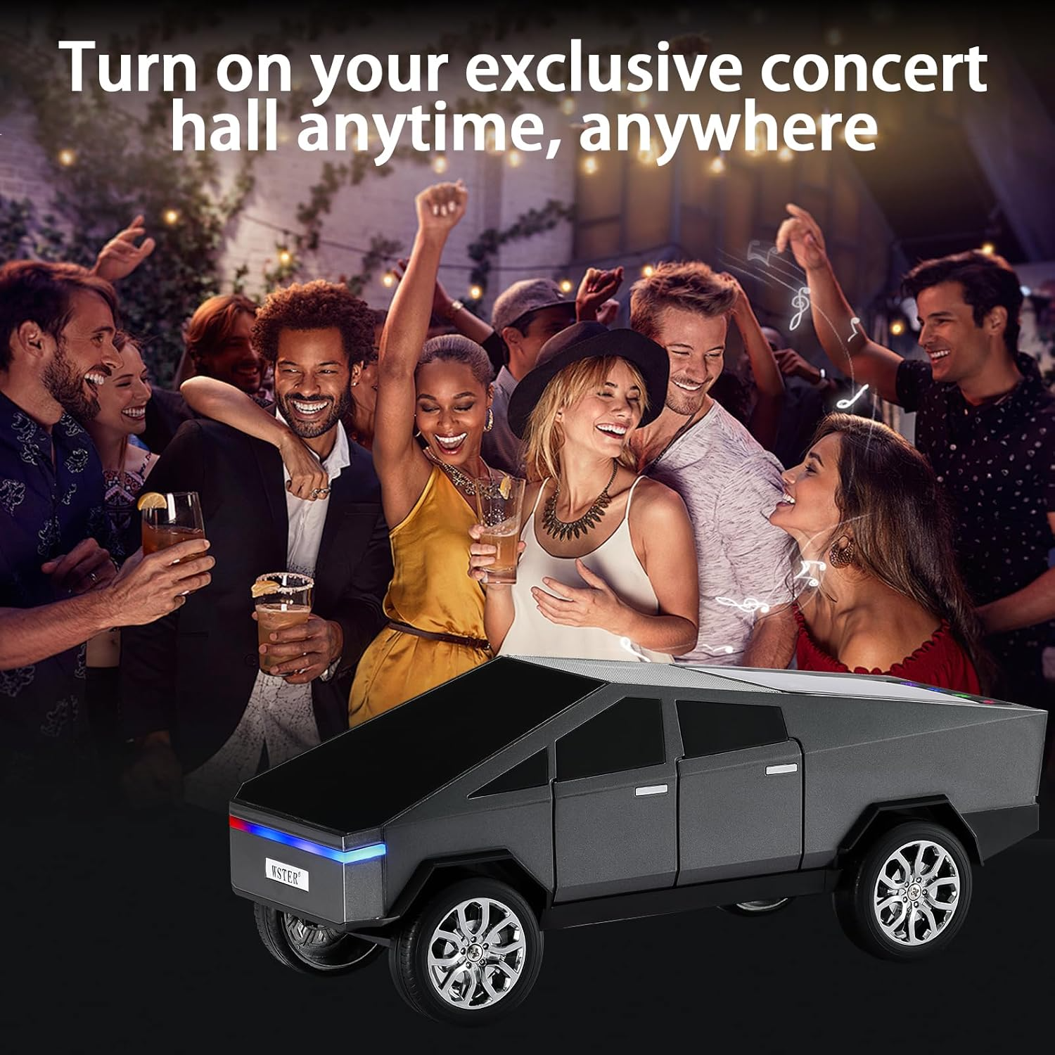 🚀 Futuristic Truck Design + Display Screen Inspired by modern electric trucks, this eye-catching speaker features a dynamic display that enhances both looks and usability.